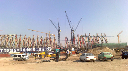 天津西站拥有亚洲最大的站台规模。天津西站地区将规划为天津市铁路、公共交通综合枢纽和城市的商业、商务副中心。天津西站的改造扩建工程,将进一步体现了天津现代化国际都市特色。而中昇公司的塔机在这个现代化大都市的建设中,献出了亮丽的一笔!