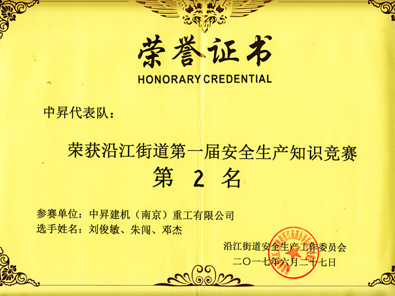 中昇建机荣获“安全生产知识竞赛”团体二等奖