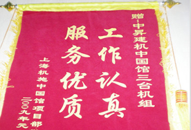 我公司上海世博会中国馆三台机组及赵永松、王亮、韩亮等十七位工程师因其在工作中出色表现,获上?;┲泄菹钅坎扛叨瓤隙ā?/p> 2009-12-27 |