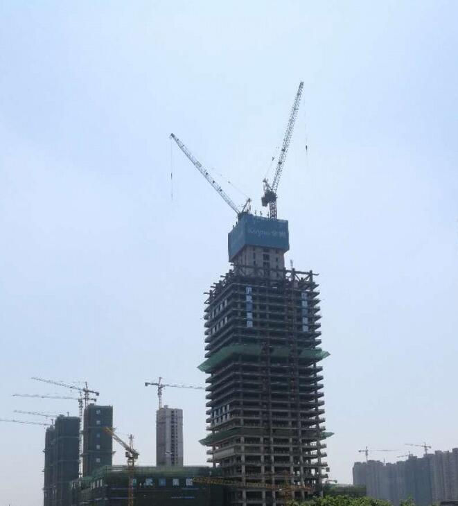建筑高度380米,采用中昇建机ZSL1250(64T)两台,ZSL750(50T)一台。